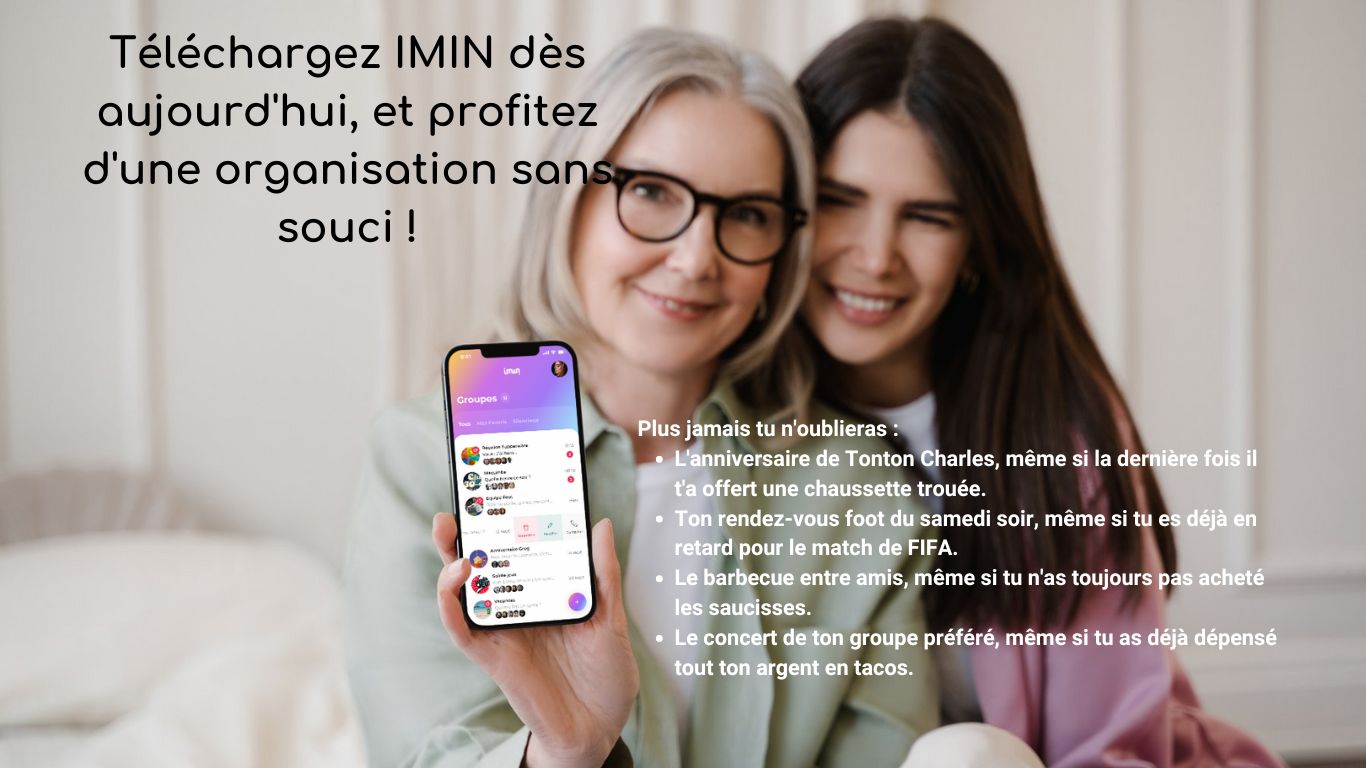 IMIN Events est une application mobile qui te permet de simplifier la gestion de tes événements avec les personnes que tu connais. Que ce soit pour organiser un entraînement sportif, une sortie entre amis, un atelier créatif, un événement solidaire ou un séminaire, IMIN est là pour te simplifier la vie !